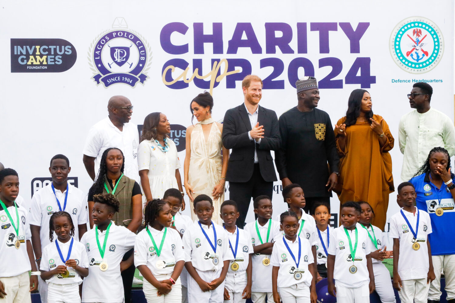 Continuing their last day in Nigeria, Prince Harry and Meghan Markle visited the country's premier Polo Club for a special reception in honor of the organization Nigeria: Unconquered. The couple joined the charity's training session at a rehabilitation facility on the first day of their trip. They were able to meet service men and women, and attend an event with military families and the Widow Association. This special reception, on their last day, took place at the Lagos Polo Club, which was founded in 1904, and represents an air of prestige and social status as one of Nigeria's oldest and esteemed social clubs. The Club is known world-wide for its robust culture in equestrian activities and its polo tournaments.