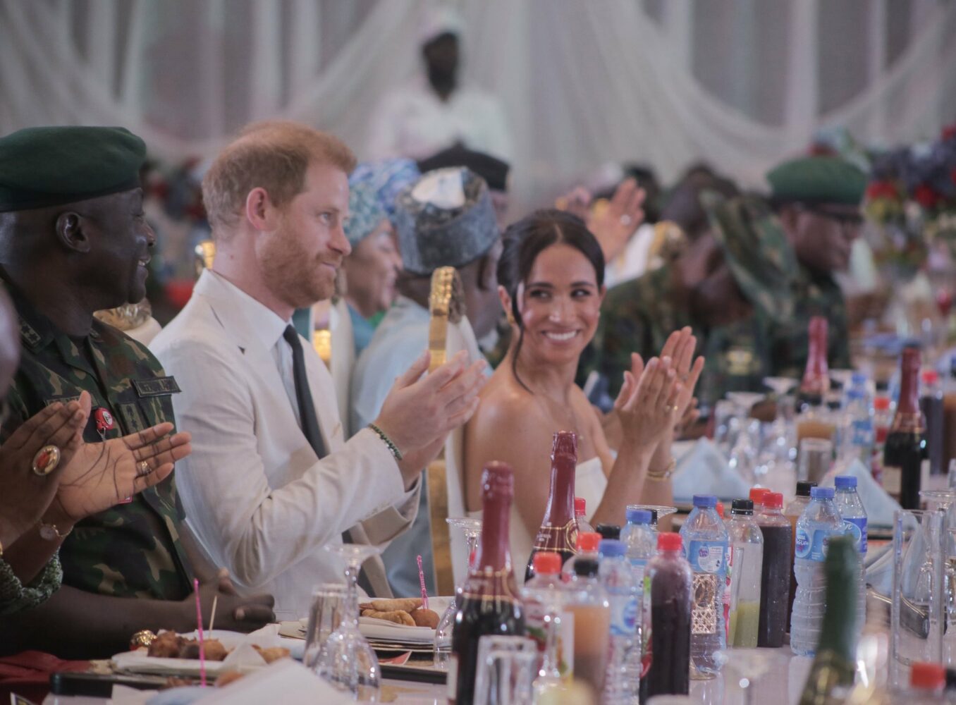 In the afternoon, the couple attended a reception at the Defense Headquarters Officers Mess in Abuja. The purpose of the event was to give the Duke and Duchess of Sussex the opportunity to spend time with the families of service men and women, as well as the widow association. A special portion of the reception was used to unveil a new rehabilitation center. The event was hosted by Chief of Defense Staff, General Christopher Musa.