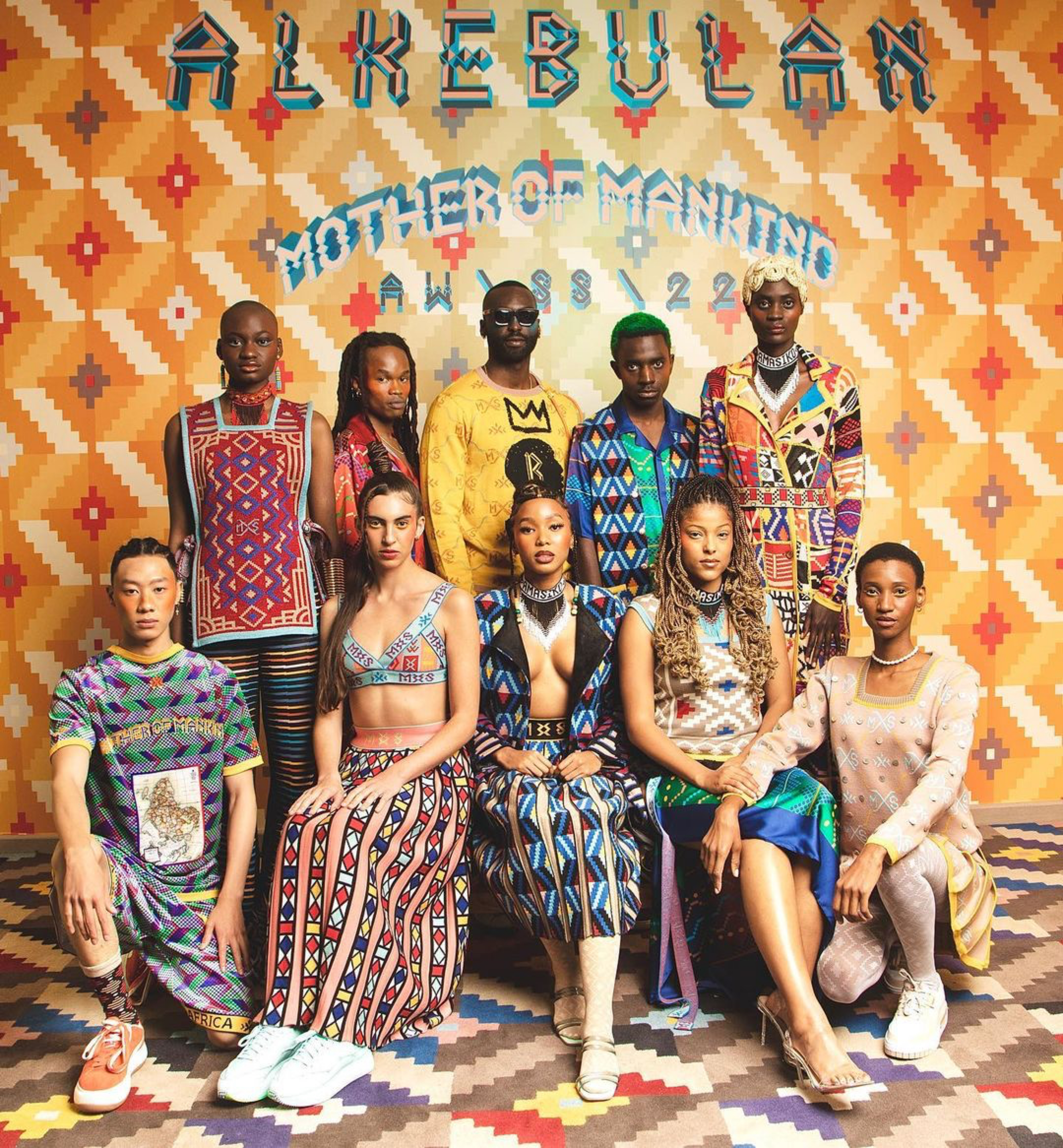 Here are some of the designs to look for in MAXHOSA AFRICA's Soho location, below. Although it has not been revealed which collections will be showcased in New York, in the photos following, Laduma's signature knit prints and styles from some of the recent seasons are featured. Each collection has ALKEBULAN in the title which is described as "a revisiting of our rich ancient history and showcase how royal Alkebulans would be adorned in the Morden day."